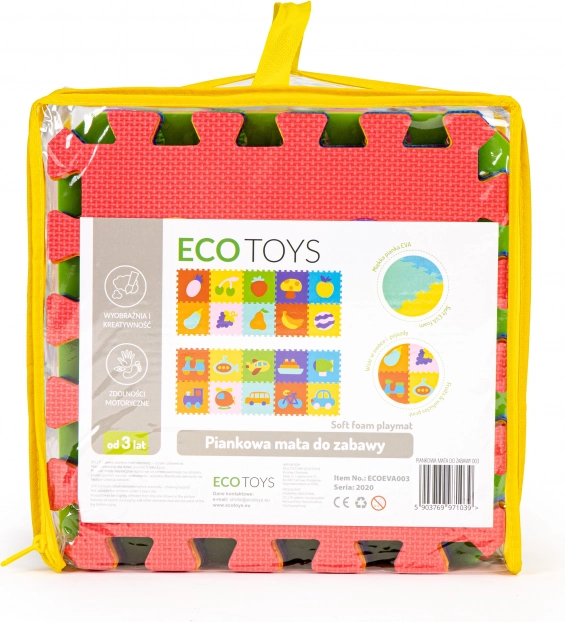 Deze multifunctionele ECOTOYS-schuimmat combineert plezier en leren. Het grotere oppervlak van 148 × 119 cm biedt kinderen een veilige ruimte om te spelen, kruipen en de eerste stapjes te zetten. Dankzij de dikte van 0,9 cm dempt hij schokken, isoleert tegen een koude vloer en verhoogt het comfort bij dagelijks gebruik.