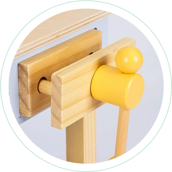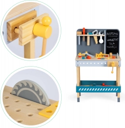 Veiligheid en leren: De werkplaats is gemaakt van natuurlijk hout, afgewerkt met veilige coatings en zonder scherpe randen, wat de veiligheid voor uw kind garandeert. Spelen met de werkplaats helpt kinderen de oog-handcoördinatie te ontwikkelen en geeft hen de mogelijkheid om vaardigheden te oefenen die later van pas komen.