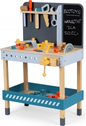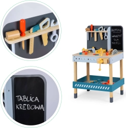 Organisatie en orde: De werkplaats heeft een groot werkblad en een organizer voor het opbergen van gereedschap, wat kinderen leert orde te houden in hun werkomgeving. Het kind kan belangrijke informatie noteren op het krijtbord dat in de werkplaats is ingebouwd.