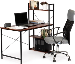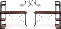 Deze houten computertafel is vervaardigd uit hoogwaardige materialen die hout en metaal combineren voor maximale sterkte en duurzaamheid. Het tafeloppervlak is bekleed met donkerbruin laminaat, wat zorgt voor een elegante look en gemakkelijk onderhoud.