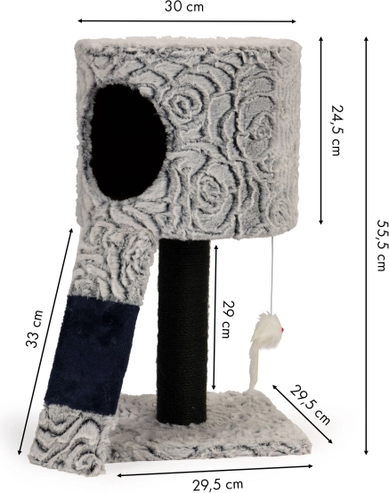 Elk platform is bedekt met zacht pluche, waardoor ze geweldige plekken bieden voor ontspanning en comfort. Ook inbegrepen zijn drie hangende pompoms, die het spelen stimuleren en voor vermaak van je huisdier zorgen. Dankzij de stabiele constructie is de krabpaal stabiel en veilig, wat essentieel is voor zijn balans tijdens het spel.