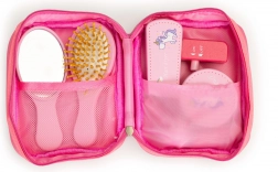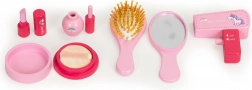Onze cosmetische set is ideaal voor meisjes die hun moeder willen nadoen en perfecte make-up en kapsels willen creëren. De verpakking bevat een lippenstift, nagellak, poederdoosje, haarborstel, spiegel en föhn. Al deze voorwerpen zijn gemaakt van hoogwaardige materialen en zijn in mooie roze tinten.