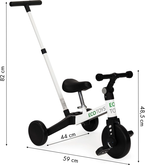 De kinder driewieler ECO TOYS is een innovatieve oplossing voor kleine ontdekkingsreizigers die willen leren fietsen. Dit model combineert een evenwichtsfiets met een traditionele fiets, wat een gemakkelijke overgang en groei met het kind mogelijk maakt.