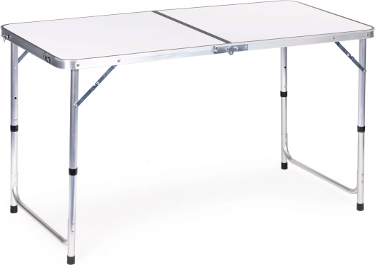 Geniet van comfortabel eten in de buitenlucht. Het ruime blad in mat wit is gemakkelijk te onderhouden en biedt plaats aan tot 4 personen. Verstelbare hoogte 61,5–69,5 cm voor comfort bij de ochtendkoffie en de gezamenlijke lunch. Het veiligheidsslot voorkomt ongewenst inklappen en de stabiele metalen constructie geeft zekerheid op ongelijke ondergrond.