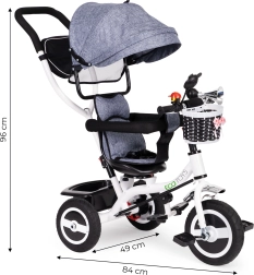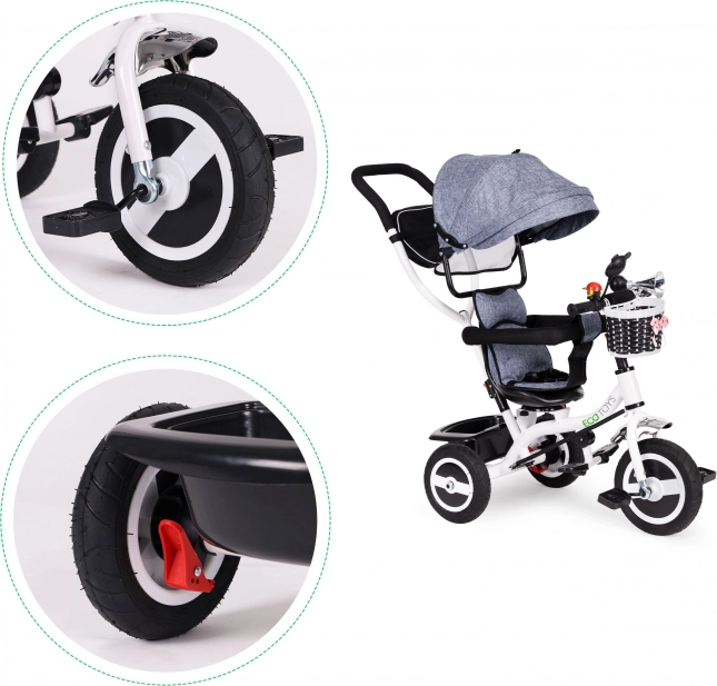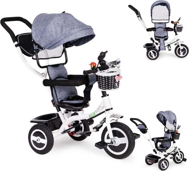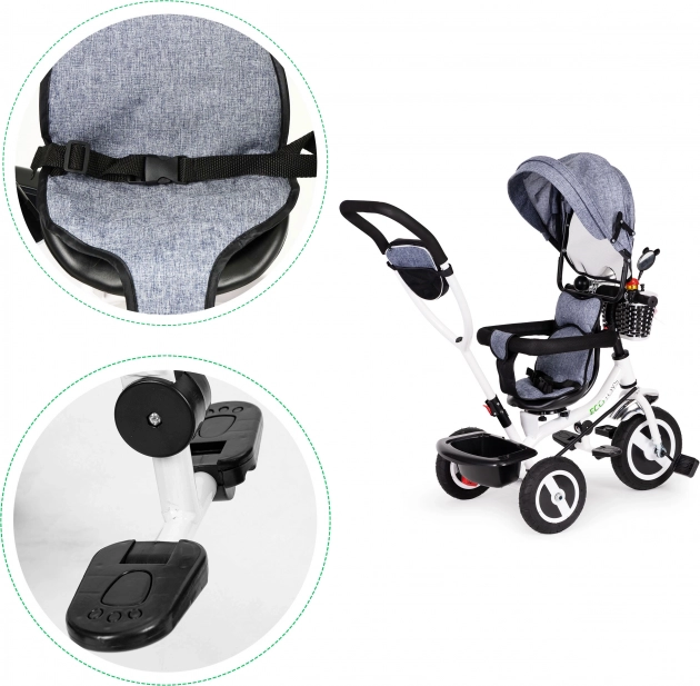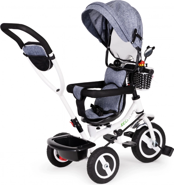 Met de ECOTOYS driewieler ontdekt je kind de wereld veilig en comfortabel. Dankzij de zachte rugleuning zit je kind prettig, terwijl gordels en veiligheidsbeugels beschermen tegen uitglijden of vallen. De inklapsbare kap beschermt tegen zon en regen. De speciale frameconstructie en draaibare zitting maken instappen eenvoudig, zelfs voor de allerkleinsten.