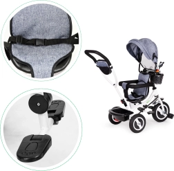 Met de mogelijkheid om de configuratie aan te passen aan de leeftijd en zelfstandigheid van het kind kunnen de kap, veiligheidsbeugels en duwstang worden verwijderd. De driewieler voldoet aan de certificeringen EN 71 en CE, wat een kwalitatief en veilig product garandeert.
