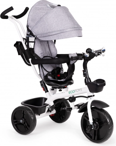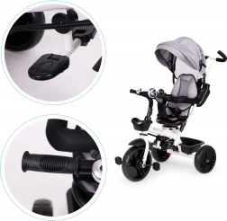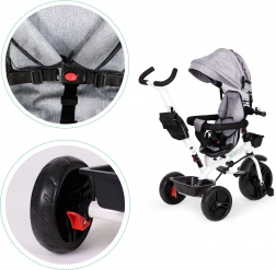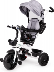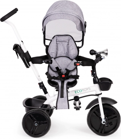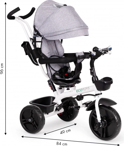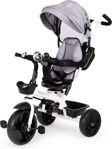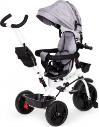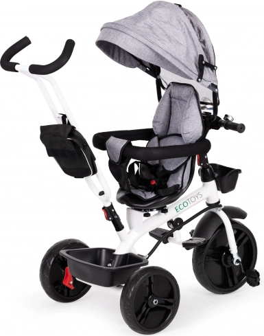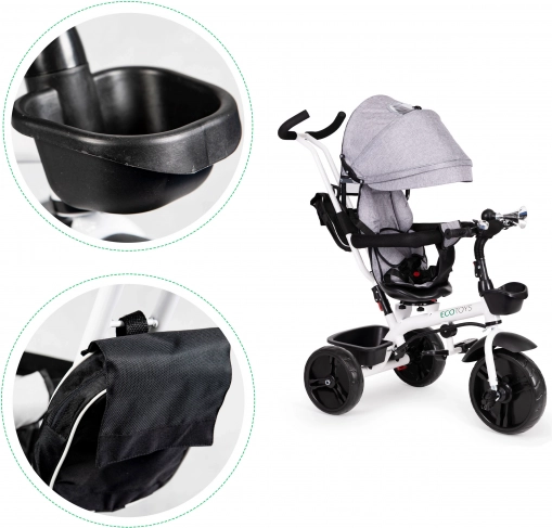 Deze multifunctionele driewieler groeit met je kind mee: van modus met ouderleiding tot zelfstandig rijden. De 360° draaibare zitting kan naar de ouder gericht worden voor beter contact, of in de rijrichting voor nieuwsgierige ontdekkers. Een gevoerde zitting, 5-puntsveiligheidsgordel en beschermbeugel zorgen voor zekerheid, terwijl de verstelbare kap beschermt tegen zon en lichte regen.
