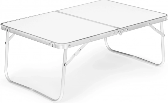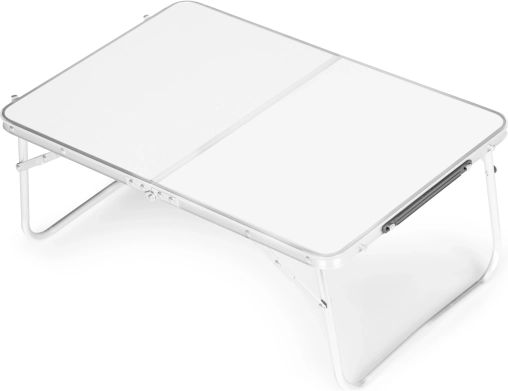 Praktische opvouwbare kampeertafel 60 × 40 cm in het wit van MULTIGARDEN, ideaal voor kamperen, picknick en trips. Biedt een licht maar stevig ontwerp, vergrendeling tegen onbedoeld inklappen, snel op- en uitklappen en een comfortabele draaggreep. Ingeklapt verandert hij in een koffertje, weegt slechts 1 kg en kan tot 20 kg dragen.