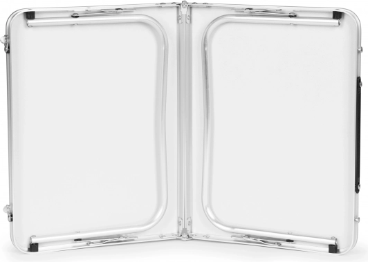 Ingeklapt heeft de tafel de vorm van een koffertje met geïntegreerde handgreep. Makkelijk te dragen en op te bergen in de auto, caravan of thuis.