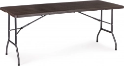 Het oppervlak met houtimitatie is decoratief, 100% waterdicht en weerbestendig. Het is gemakkelijk schoon te maken, vlekt niet en dankzij de dikte van 4 cm voelt het stevig aan – het draagvermogen van de tafel is tot 100 kg.