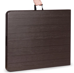 Het slimme mechanisme laat u de tafel in ongeveer 20 seconden opvouwen tot een compacte koffer. In ingeklapte toestand meet hij 90 × 70 × 8,6 cm en dankzij de geïntegreerde handgreep is hij gemakkelijk te dragen en op te bergen – ideaal voor catering, tuinfeesten, kamperen en familiepicknicks.