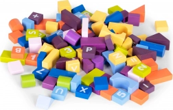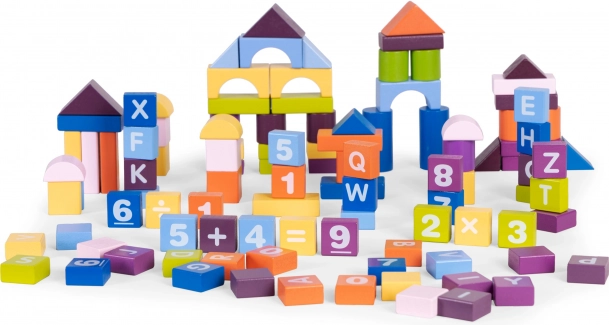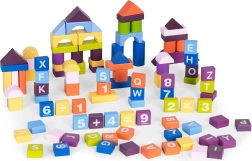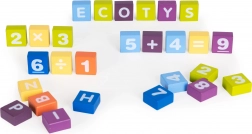 Dankzij bedrukte letters, cijfers en symbolen maken kinderen zich spelenderwijs de basis van het alfabet en rekenen eigen terwijl ze hun eerste bouwwerken maken.
