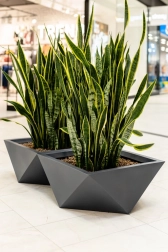 Dankzij hoogwaardig polyethyleen is hij uitzonderlijk bestand tegen mechanische beschadiging, weersinvloeden en UV-straling. Vereist geen intensief onderhoud – voor reiniging volstaat een vochtige doek met een beetje zeep. Geschikt voor zowel levende als kunstplanten en voor plaatsing INDOOR / OUTDOOR.