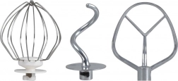 De set bevat een deeghaak, een K-klopper voor mengen en een garde. Alle accessoires zijn vaatwasmachinebestendig voor eenvoudig onderhoud.