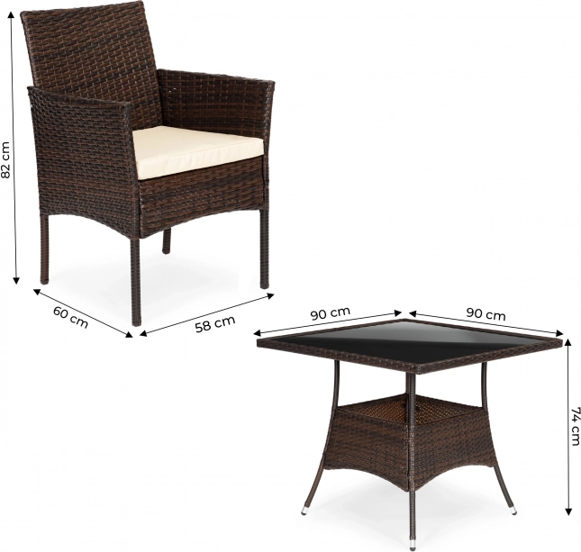 De grote tafel heeft een diameter van 90 cm en biedt voldoende ruimte voor familiebijeenkomsten, samenzijn met vrienden of rustige avonden op uw balkon of terras.