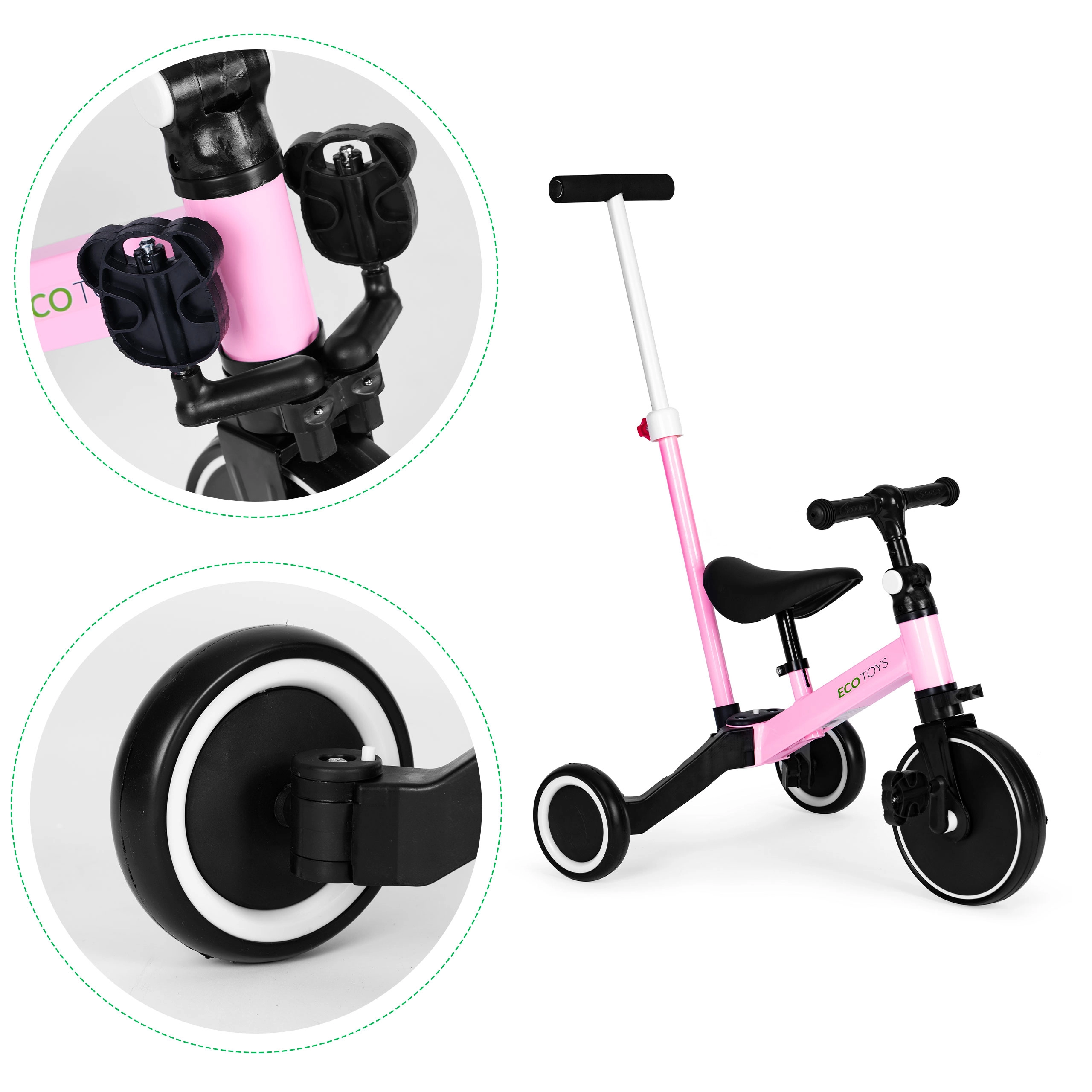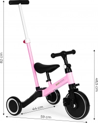 De mogelijkheid om een loopfiets om te bouwen naar een klassieke fiets met pedalen betekent dat een kind op dit type fiets kan leren rijden op een veilige manier. Een zacht zadel en antislipgrepen zorgen voor comfortabel speelplezier gedurende vele uren. De wielen zijn gemaakt van EVA, die lekbestendig zijn, waardoor ze zowel binnen als tijdens wandelingen gebruikt kunnen worden.