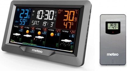 De slimme weerstation METEO SP101 met Wi‑Fi-verbinding maakt het mogelijk om het weer overal te volgen via de Smart Life (TUYA)-app. Het meet binnentemperatuur en buitentemperatuur en luchtvochtigheid, heeft geheugen voor min./max.-waarden, 5-daagse weersvoorspelling via internet, een UV-indicator, een wekker met sluimerfunctie en kan worden neergezet of aan de muur worden gehangen.