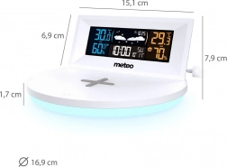 Dit innovatieve weerstation van Meteo is de perfecte keuze voor iedereen die een volledig overzicht van het weer wil en tegelijkertijd zijn apparaten draadloos wil opladen. Het stijlvolle ontwerp biedt de mogelijkheid om de lichtkleur aan je stemming aan te passen, evenals een multikleurenscherm voor gemakkelijke afleesbaarheid van de metingen.
