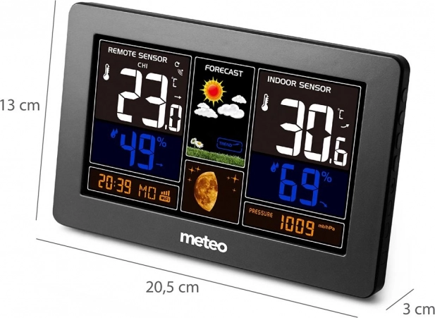 Dit weerstation is uitgerust met functies voor draadloze meting van temperatuur binnen en buiten, evenals vochtigheid. Het maakt verbinding met een WiFi-app mogelijk, zodat u de gegevens via uw smartphone kunt controleren vanaf elke plek ter wereld met internettoegang. Verder beschikt het over een klok met automatische tijdsynchronisatie en een barometer.