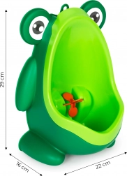 Het urinoir is speciaal ontworpen om het leren gebruikmaken van het toilet gemakkelijker en leuker te maken. Het kleurrijke en functionele urinoir is de ideale oplossing voor kinderen die beginnen met zelfstandig naar het toilet gaan. Het urinoir in de vorm van een kleurrijke kikker trekt de aandacht van elke jongen, waardoor hij het graag zal gebruiken.