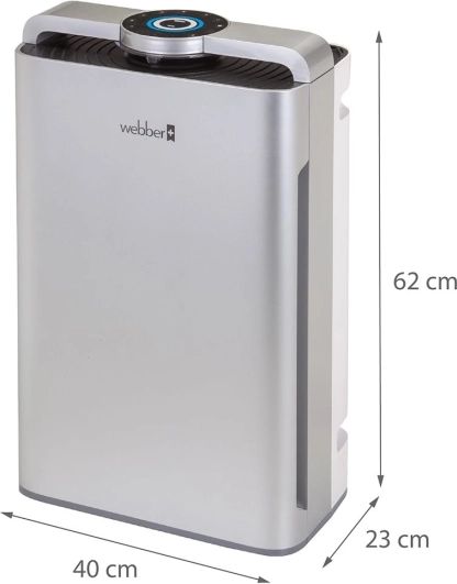 De nieuwste luchtreiniger van Webber komt in een elegante zilveren kleur, die niet alleen zuivert maar ook je interieur stijlvol aanvult. Profiteer van de moderne technologie voor maximale luchtzuiverheid.