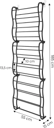 Een slimme oplossing voor elk huishouden: de hangende schoenorganizer in laddervorm wordt eenvoudig over de bovenrand van de deur gehangen en maakt direct vloerruimte vrij. Dankzij de overzichtelijke indeling heb je je favoriete paren altijd bij de hand – van sneakers en slippers tot pumps.