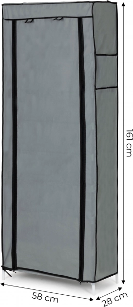 De oprolbare hoes met twee ritsen beschermt je spullen tegen stof en biedt snelle toegang. De compacte afmetingen 58 × 28 × 161 cm zijn ook geschikt voor kleinere ruimtes.