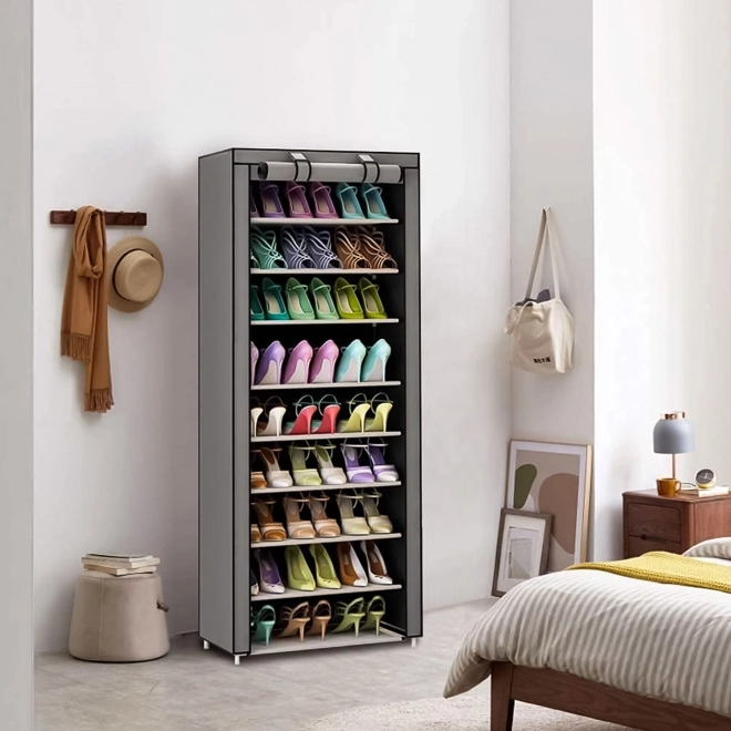Deze textielkast is een ideale oplossing voor de slaapkamer, hal en badkamer. Het meerlagige planksysteem biedt voldoende ruimte voor T-shirts, truien, handtassen en schoenen, terwijl de oprolbare hoes met rits de inhoud beschermt tegen stof en vocht en snelle toegang biedt tot je spullen.
