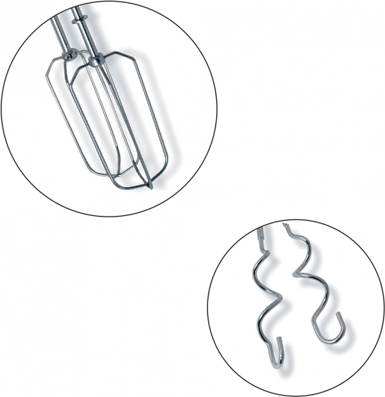 De mixer kan worden uitgerust met verwisselbare opzetstukken voor mengen en kloppen. Hij kan zonder problemen zwaardere deegsoorten aan, zoals kerstcheesecake of paasbrood (gerezen deeg).