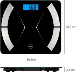 Deze weegschaal is gemaakt van 4 mm dik gehard glas en kan een belasting aan tot 180 kg. Het nauwkeurige meetsysteem garandeert een meetnauwkeurigheid van 50 g en antislipvoetjes zorgen voor stabiliteit tijdens het gebruik.