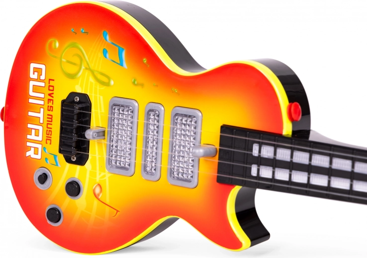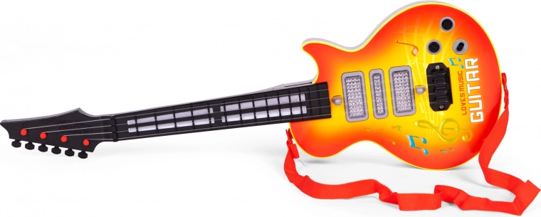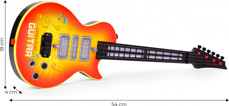 Deze lichte en duurzame kinderrockgitaar is ideaal voor de eerste muzikale stapjes. Dankzij de infraroodsensor “dansen” de lampjes op het ritme van de vingerbeweging over de snaren, wat kinderen motiveert om ritme en basisvaardigheden te ontdekken. De LED-achtergrondverlichting maakt het spelen extra aantrekkelijk en bevordert creativiteit.