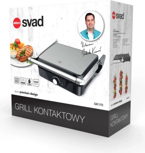 De elektrische grill ELDOM GK170 biedt de vrijheid om te grillen zonder rook en zonder op het weer te hoeven wachten. Dankzij het draaibare deksel klap je hem eenvoudig tot 180° open en verander je hem in een vlakke grill met groot oppervlak, of gebruik je hem als contactgrill voor snel en gelijkmatig garen aan beide kanten. Het krachtige 2000 W zorgt voor snel opwarmen en uitstekende resultaten met vlees, vis, panini en groenten.