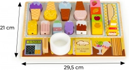 Deze houten ijssalonset nodigt kinderen uit in de wereld van rollenspel – ze kunnen verkoper, klant of kleine banketbakker worden. Nauwkeurig vervaardigde onderdelen met realistische details geven het spel echtheidsgevoel en ontwikkelen fijne motoriek, samenwerking en communicatie.