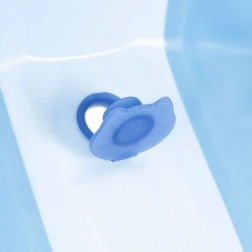 De zachte rubberen plug zonder scherpe randen is eenvoudig te verwijderen en wordt wit bij te heet water. Zo wordt baden veiliger en comfortabeler.