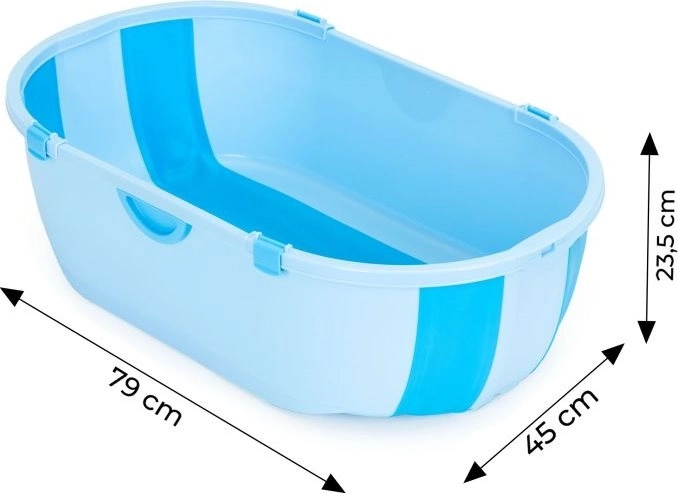 Het robuuste frame en verstevigde kunststof onderdelen zorgen voor stabiliteit, geïntegreerde zijhandgrepen vergemakkelijken het dragen en vasthouden tijdens het baden. Het gladde oppervlak is eenvoudig te reinigen en prettig voor de tere babyhuid. Het badje heeft CE-certificering en is geschikt voor dagelijks gebruik.
