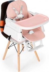 De stoel is in hoogte verstelbaar. Je kunt de poten en de voetsteun eenvoudig verwijderen, zodat de hoge stoel kan worden omgebouwd tot een lagere stoel. Een uniek element is de zitting, die je kunt gebruiken op een eetkamer- of keukenstoel. De set bevat speciale bevestigingsriemen voor de zitting en rugleuning van een klassieke stoel.