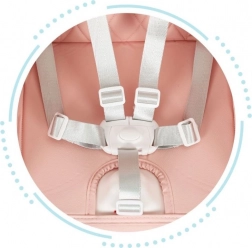 De zitting is uitgerust met 5-punts veiligheidsgordels, waardoor je kind correct wordt vastgezet en de gordels het in de juiste positie houden.