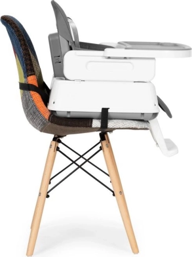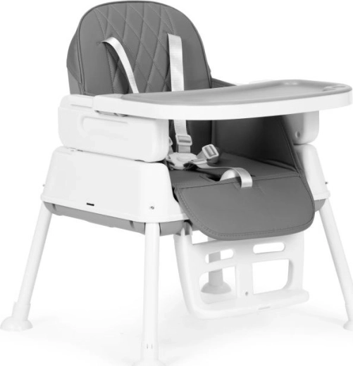 De stoel is in hoogte verstelbaar. Je kunt de poten en de voetsteun eenvoudig verwijderen, waardoor de hoge stoel kan worden omgevormd tot een lagere stoel. Een uniek element van de stoel is de zitting, die je kunt gebruiken op een eetkamer- of keukentafelstoel. De set bevat speciale bevestigingsriemen voor de zitting en rugleuning van een klassieke stoel.