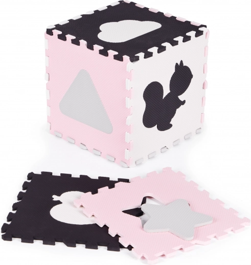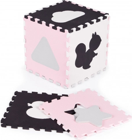De set met 36 delen (16 vierkanten + 20 randelementen) maakt eenvoudig koppelen in verschillende vormen mogelijk. Met de randen bouwt u een praktisch speelhek – droogballenbad dat speelgoed en balletjes binnen houdt. Uitneembare vormen stimuleren motoriek, creativiteit en het leren van vormen; uit de delen kunnen ook eenvoudige 3D-constructies worden gebouwd.