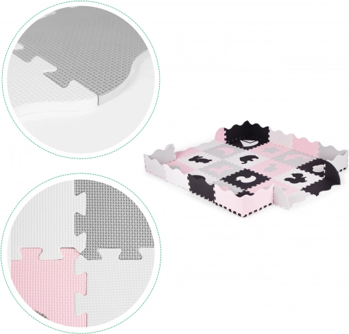 Dankzij de randdelen kan de mat worden gesloten tot een hek, dat balletjes en speelgoed binnenhoudt en de speelpret voor kinderen vergroot.