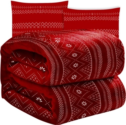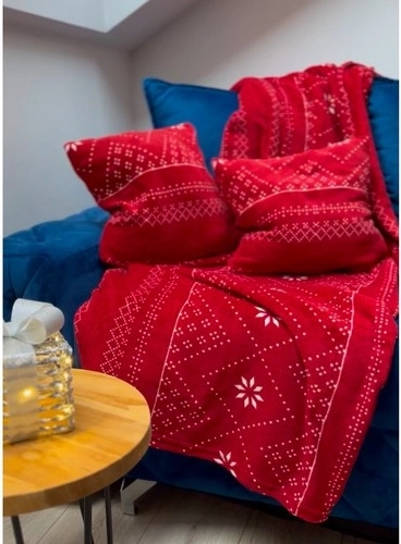 Creëer een knus hoekje thuis met de rode deken en twee kussenhoezen met wintermotief. Microfleece van polyestervezel is aangenaam zacht, warmt snel op, is ademend en eenvoudig te onderhouden. De set is geschikt voor dagelijks gebruik, loungen bij een film of het lezen van een boek.