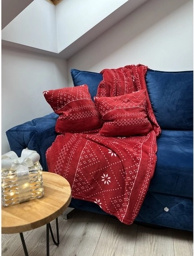 Het decoratieve patroon komt tot zijn recht in een klassiek, Scandinavisch of minimalistisch interieur. De deken kan dienen als sprei voor bed of bank, de hoezen frissen de zithoek gemakkelijk op en brengen een feestelijke sfeer in de kamer.