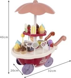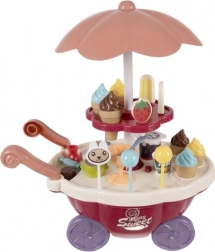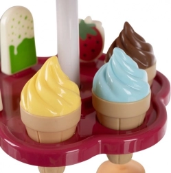 Bollen ijs, ijslolly’s, lollies, beker, lepeltje en muntjes – alles wat kinderen nodig hebben om te verkopen, te serveren en te betalen, inclusief een 360° draaibare etalage.