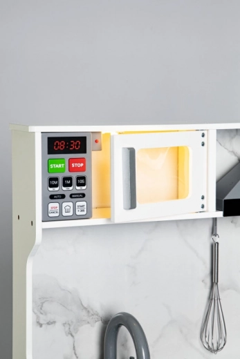 Inbegrepen is een magnetronoven met verlichting en geluidseffecten en een afzuigkap die de echte keukenventilator imiteert.