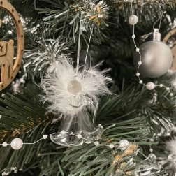 Glazen engeltjes met witte vleugels staan voor hoge kwaliteit en een gedetailleerde afwerking. Ze zijn gemaakt van transparant glas dat zorgvuldig is gevormd tot elegante vormen met zachte lijnen. De vleugels zijn bedekt met witte veertjes, waardoor de engeltjes bij ieder zuchtje wind een gevoel van beweging en zachtheid krijgen.