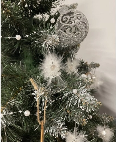 De set van glazen engeltjes met veren vleugels biedt een verfijnde esthetiek en zachtheid. Ze zijn de ideale versiering voor de kerstboom.