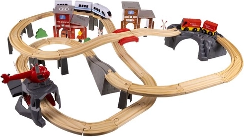 Kruzzel 22754 Houten batterijtreinbaan 70-delig, 480 cm