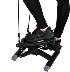 Het goed leesbare LCD‑scherm toont de belangrijkste statistieken: tijd, aantal stappen, verbrande calorieën en gemiddelde stappen per minuut, zodat je gemakkelijk het juiste tempo aanhoudt. Dankzij de weerstandsregeling passen zowel beginners als gevorderden de training naar wens aan. Antislippedalen en rubberen einddoppen beschermen de vloer en voorkomen ongewenst verschuiven.