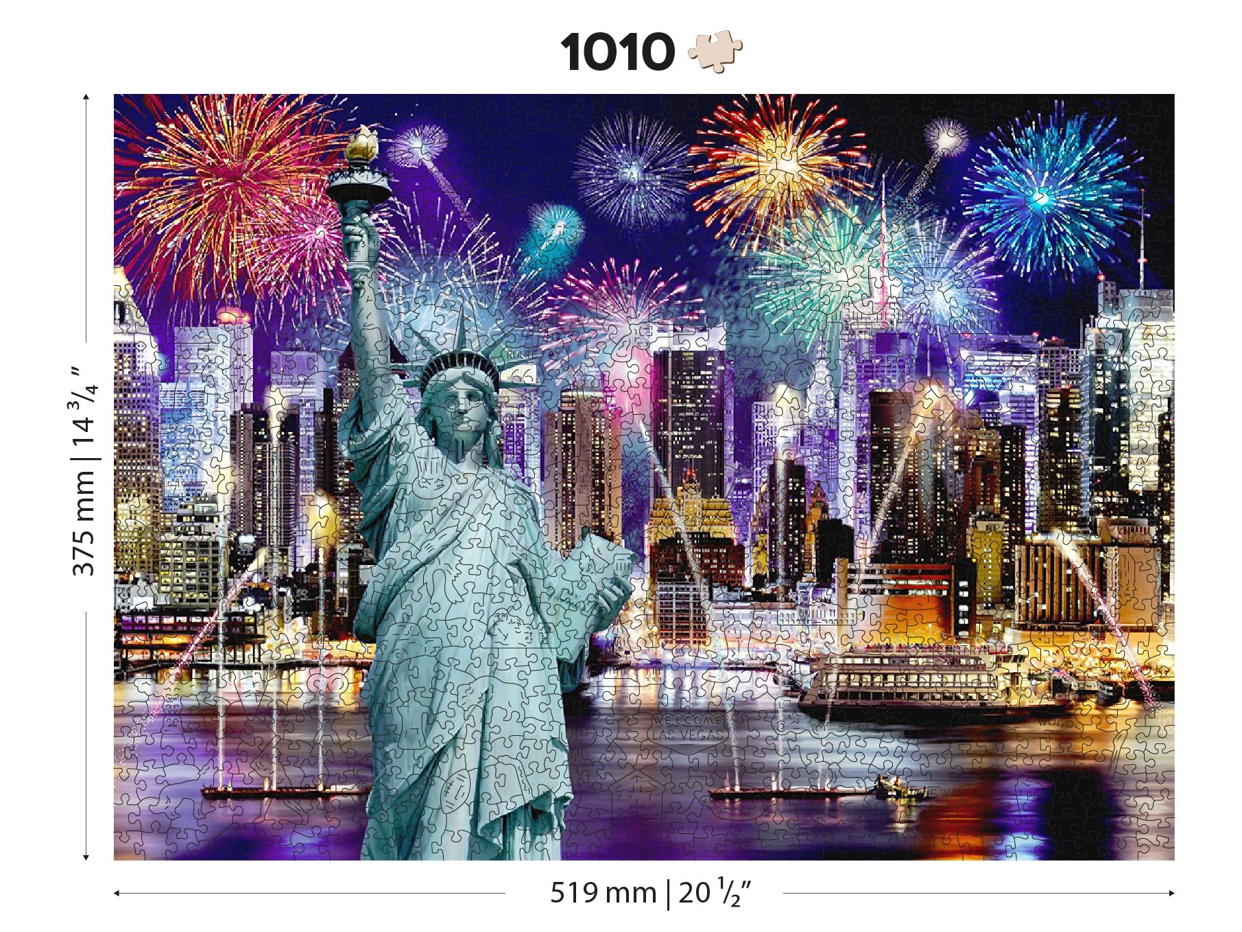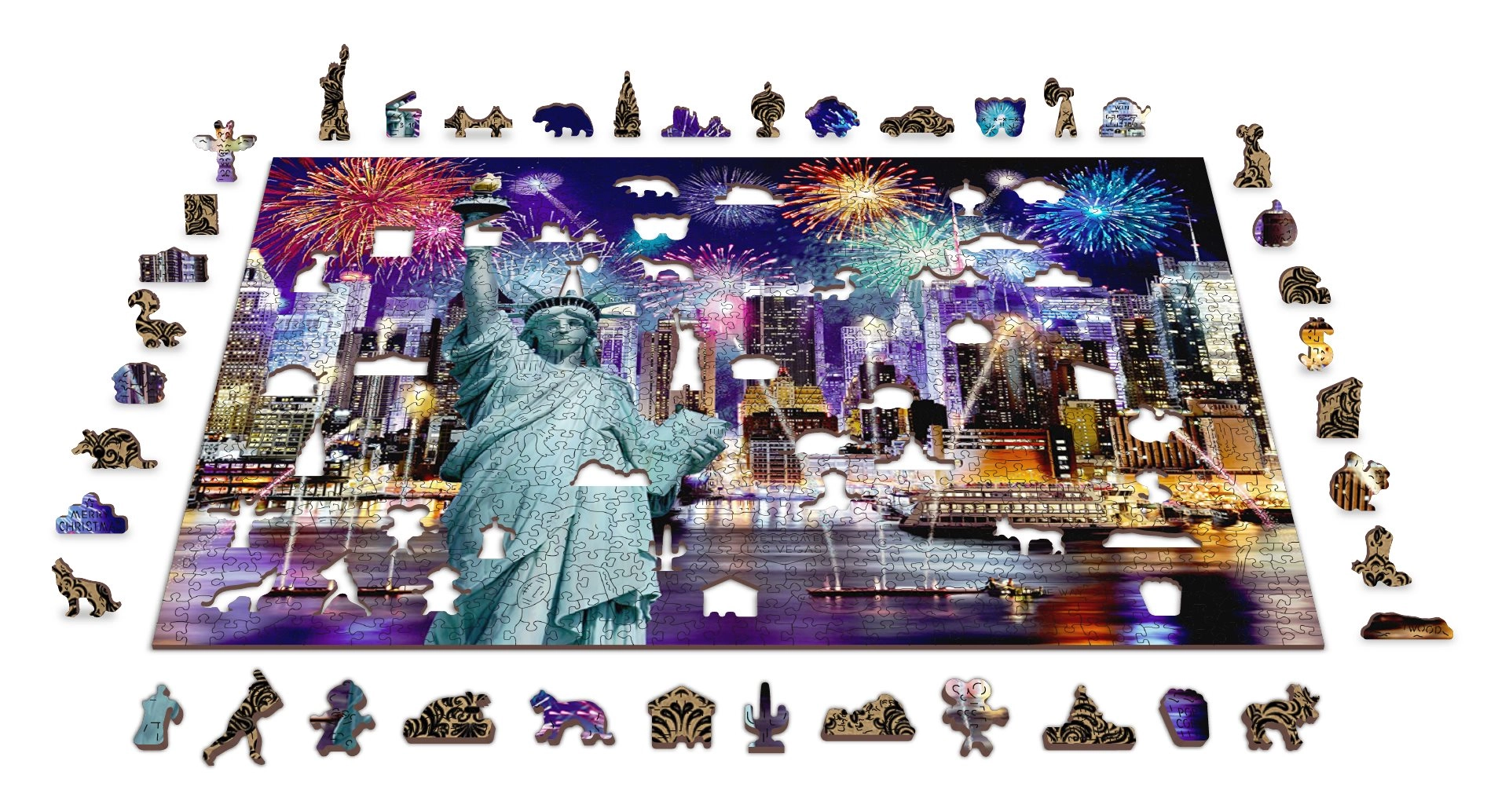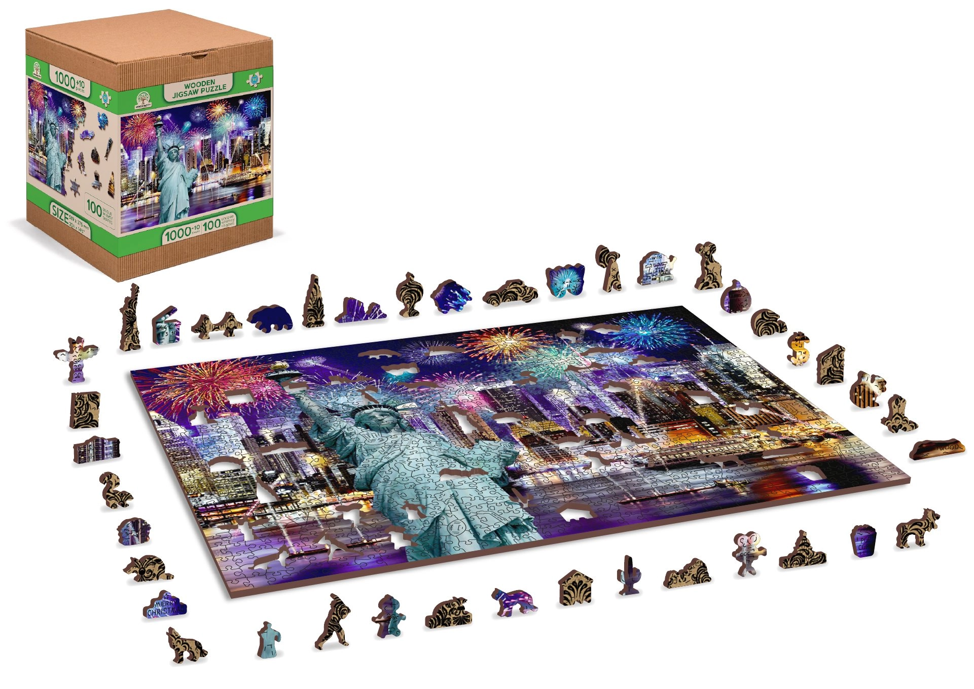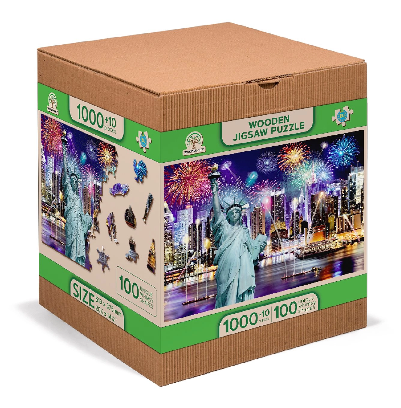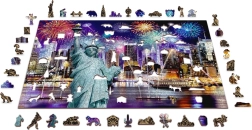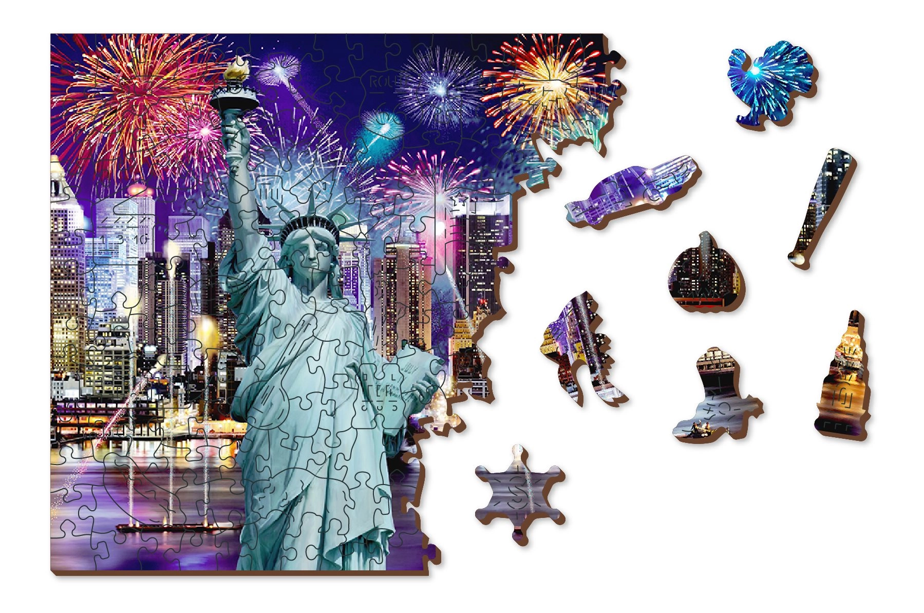 Ga op reis naar het nachtelijke New York met onze luxe 2-in-1 houten puzzel. Zorgvuldig uitgesneden uit hoogwaardig materiaal, deze puzzel biedt unieke, gevormde stukjes die afzonderlijk dieren, objecten of gebouwen vormen, en is tegelijkertijd milieuvriendelijk.