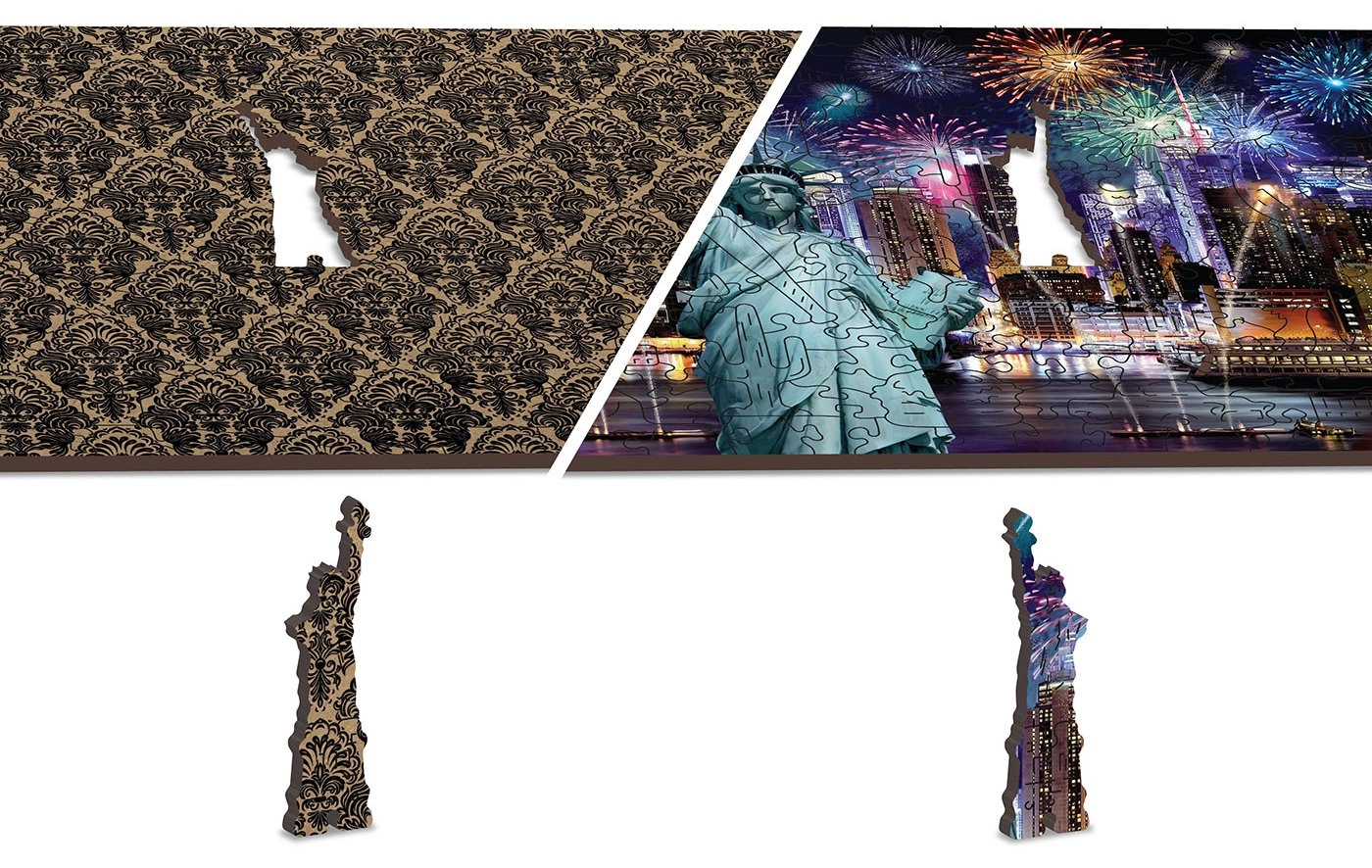 Duik in prachtige uitdagingen met onze dubbelzijdige houten puzzel Nachtelijk New York 2-in-1. Laser-gesneden details garanderen gladde randen zonder splinters en de hoogste verwerkingsprecisie: